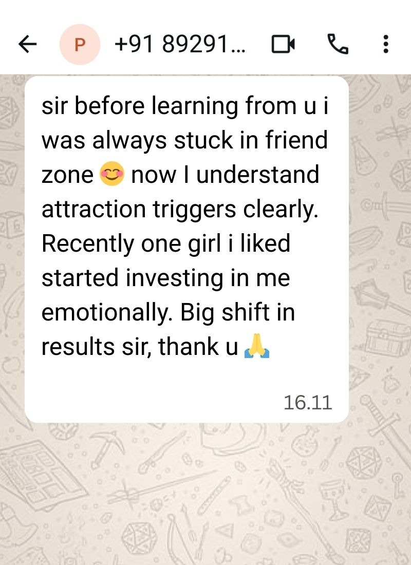 Whether you're trying to fix a complicated love life, understand female psychology better, or rebuild attraction in a relationship, this session gives you clarity, confidence, and a strategic action plan tailored to your exact situation.